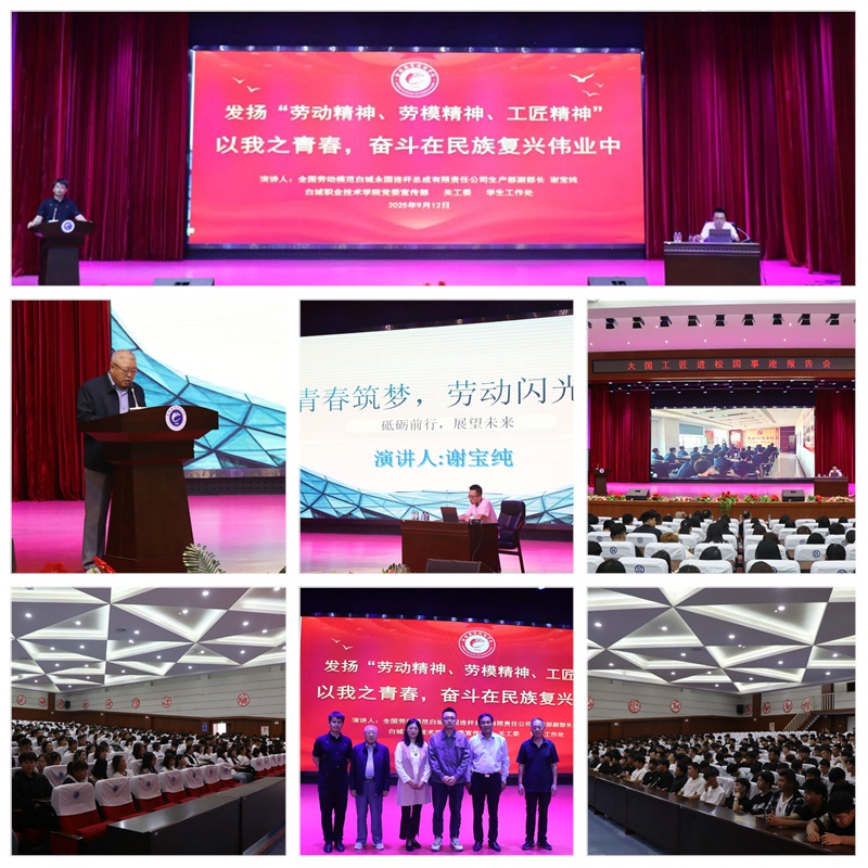 9月12日下午,全国劳动模范、白城永固连杆总成有限责任公司生产部副部长谢宝纯走进学院,为700余名新生作了“青春筑梦,劳动闪光”事迹报告。